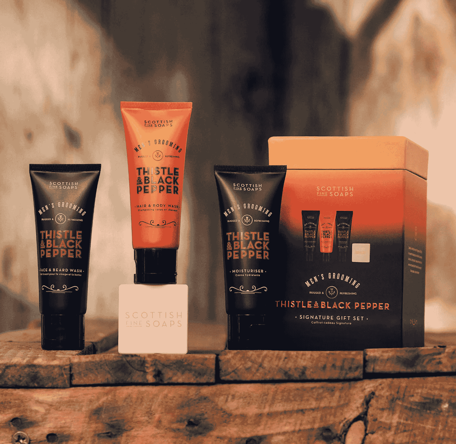 balm and Eau De Toilette—all infused with the distinctive Thistle & Black Pepper