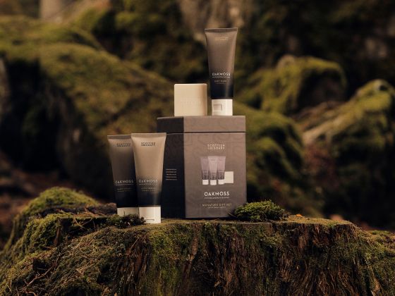 box. The earthy, mossy fragrance evokes the calm of Scottish woodlands.